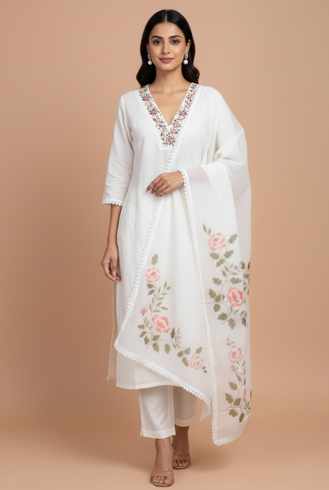 Balanced Styling – Solid-colour bottom and a digitally printed dupatta with crochet trim deliver a composed, versatile set.