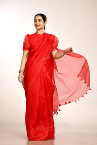 Beautiful Kesar and Red Silk Saree with Heavy Border